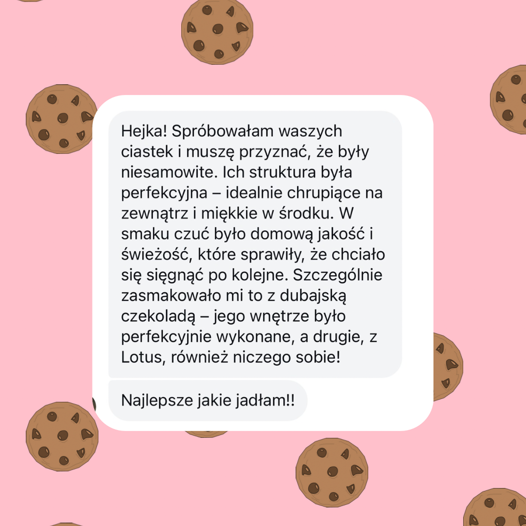Nasze ciasteczka wytrzymują około 5-6 dni, jeśli zostaną w zapieczętowanym opakowaniu w chłodnym i suchym miejscu 🥰🍪